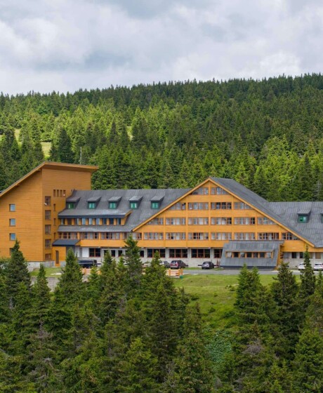 Welcome to our full-service hotel resort; A landmark elevated 1.335 m above sea level, just few steps from the peak of Jeseníky Mountains, Praděd.Hotel Petrovy kameny is a full service mountain resort with 62 hotel rooms, restaurant, wellness with gym and meeting rooms operated in all seasons. The resort is nestled in wild nature, surrounded by crystal clear air and panoramic views that offer a unique escape. Parking in front of the hotel is limited due to winter weather conditions but in the rest of the year perfectly accesibale.